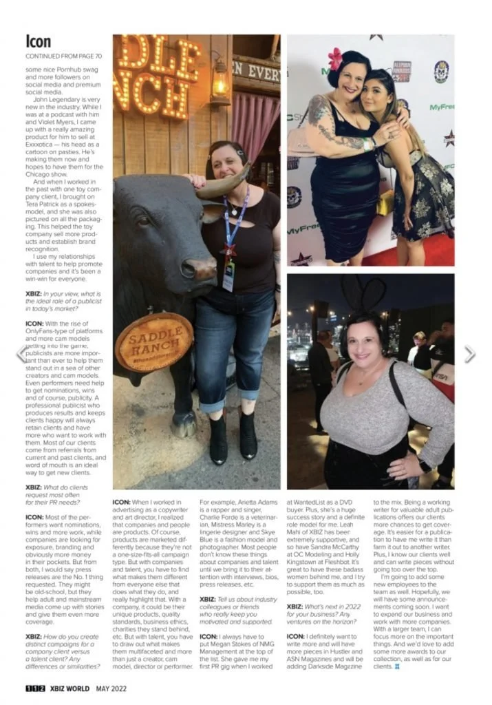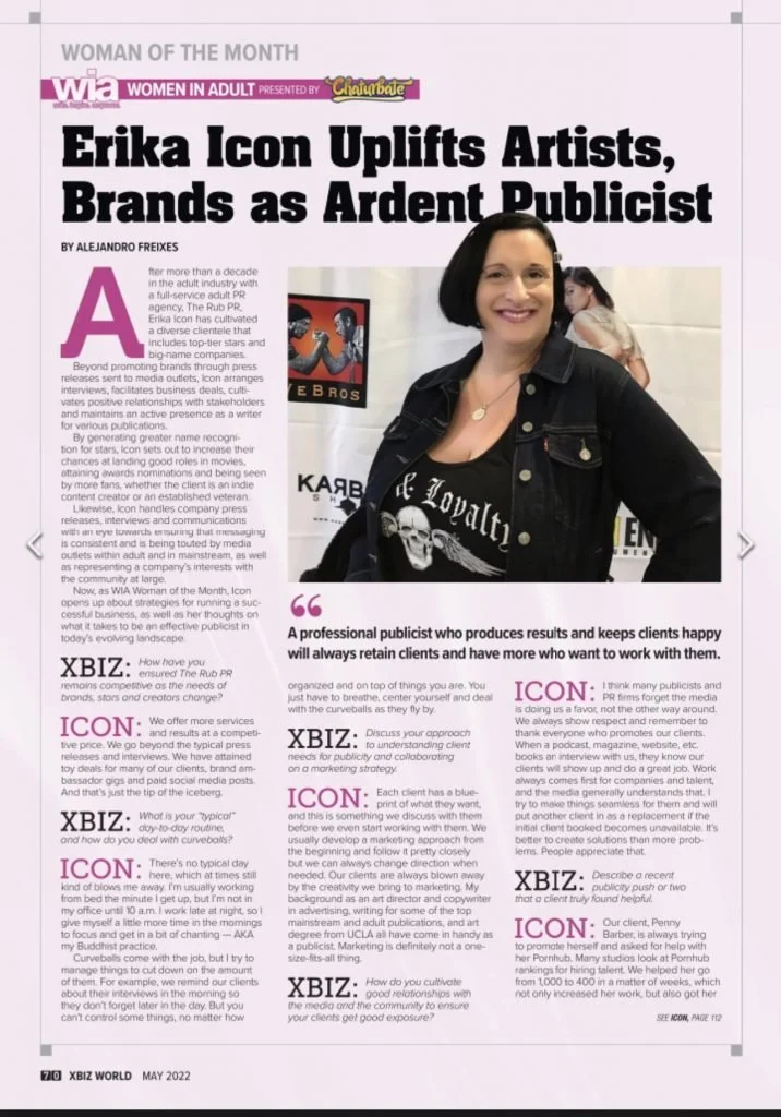 Our fearless leader is the WIA of the month for the May issue of XBIZ World. Get it in print or view it online https://www.xbiz.com/pub/xbizworld/2022-05/ on Pages 70 and 112.