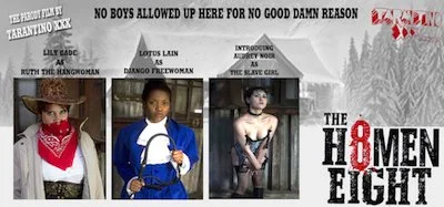 Tarantino XXX, Quentin Tarantino, New Beverly Cinema, Hateful 8, The Hatemen 8, Lily Cade, Lotus Lain, Audrey Noir, Old West, World War II, Pulp Fiction, lesbians, trailer, SFW, NSFW, grindhouse