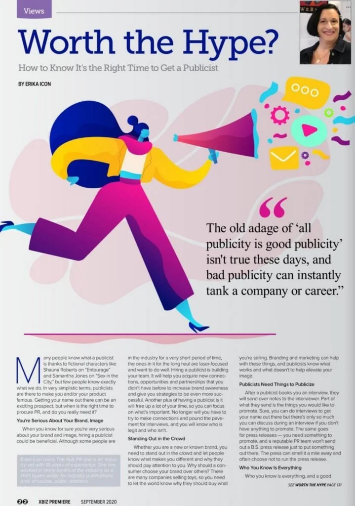 Check out Erika Icon’s op-ed piece on PR for XBIZ Premiere Mag & her on the cover! The piece starts on Page 22. Pick up the print issue or see it online at xbiz.com/pub/xbizpremiere!